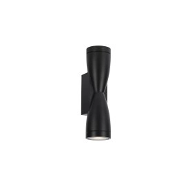 Optonica up/down sienas gaismeklis ar 2×GU10 un IP54 aizsardzību — melns alumīnija korpuss, lakonisks cilindrisks dizains. Veido virziena gaismu uz augšu un leju fasādēm, ieejām un terasēm.